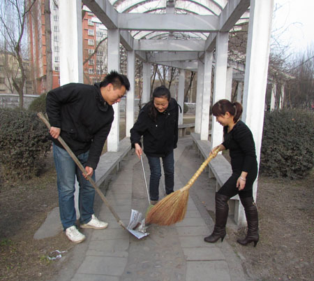路義務(wù)打掃街道衛(wèi)生,清洗街道護(hù)欄,并對(duì)就近的公交站點(diǎn)進(jìn)行了擦洗。